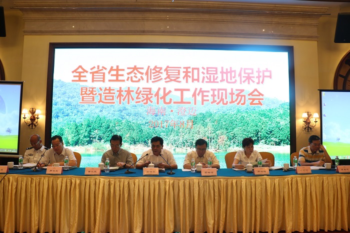 会议期间考察了海口市、澄迈县开展生态修复、湿地保护和造林绿化工作。