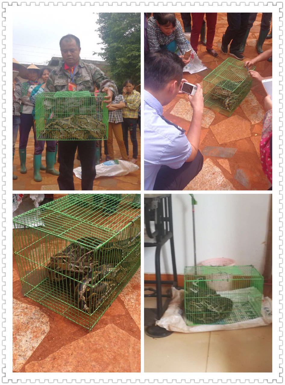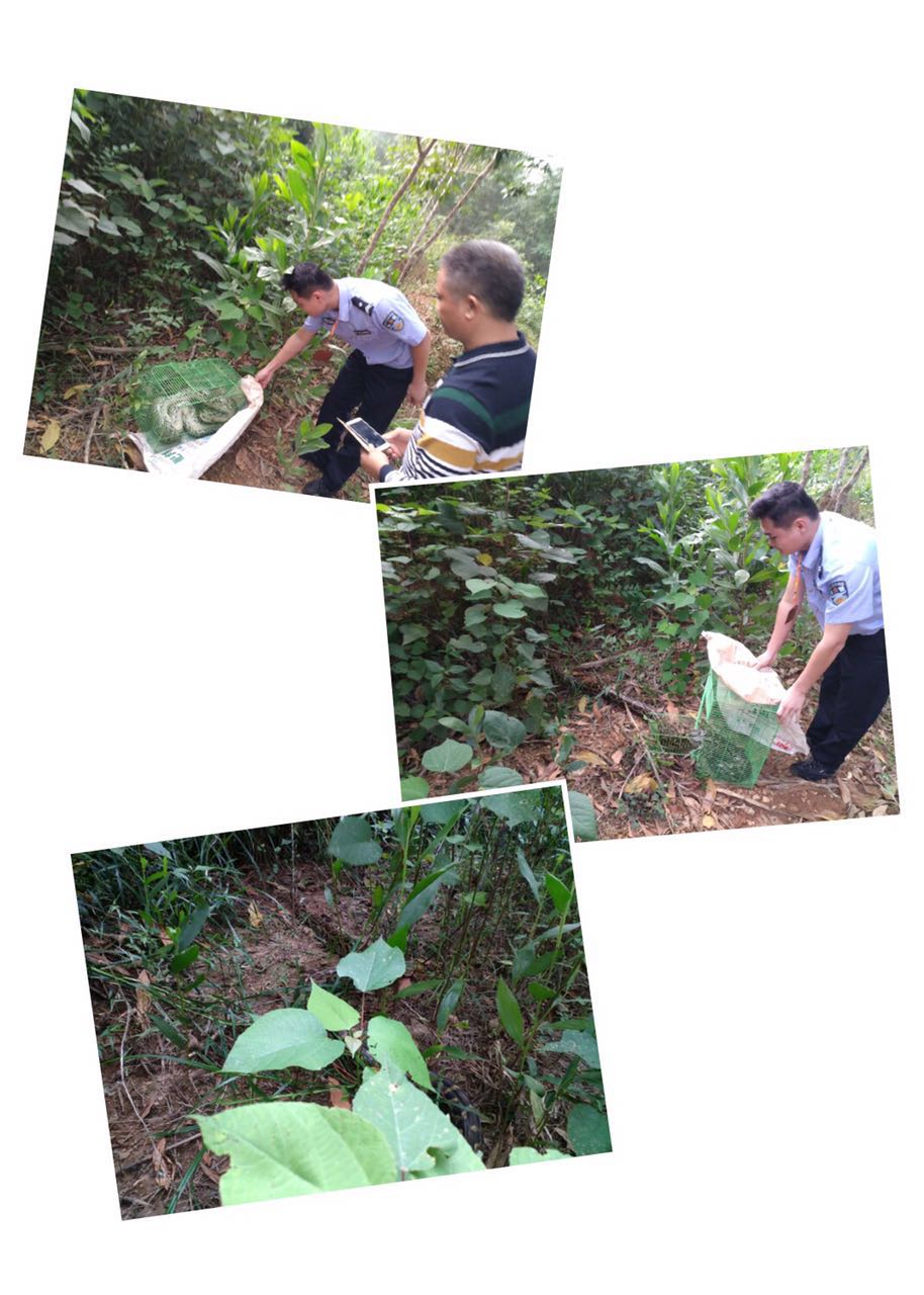 2017年10月31日12时许,接群众电话报称:在澄迈县红光农场土艳村福海庄园菠萝种植地发现一条蟒蛇。接报后,我站协同福山镇林业站、福山林区派出所到该地带回蟒蛇。